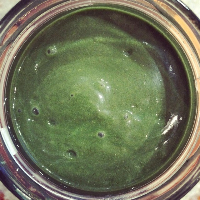 Posted by Carolyn Lees onINGREDIENTS 1 cup frozen banana (frozen banana creates a creamy consistency) 1 lemon peeled 1 cup spinach 1 small handful of cilantro 1 thumb of ginger 1 teaspoon of chlorella 1/4 cups ice 3/4 coconut water Blend and enjoy!
