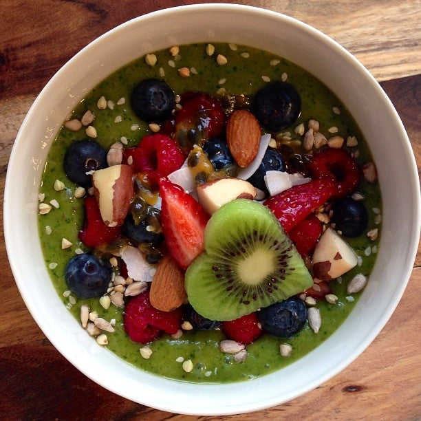 Posted by Naturopath . onCombine baby spinach, a little organic coconut milk, frozen banana, mango, a teaspoon of Synergy Natural Spirulina, and maca powder, topped with activated buckinis, sunflower seeds, almonds, Brazil nuts, mixed berries, kiwi and coconut flakes.Spirulina is a super algae rich in beta-carotene and iron to help boost immunity and energy levels, and plenty...